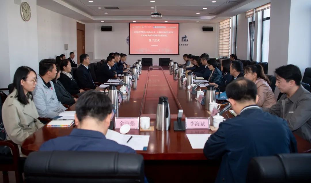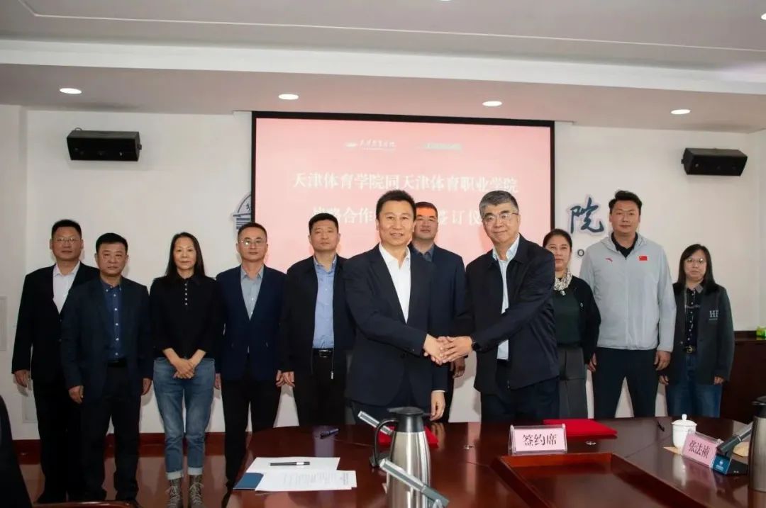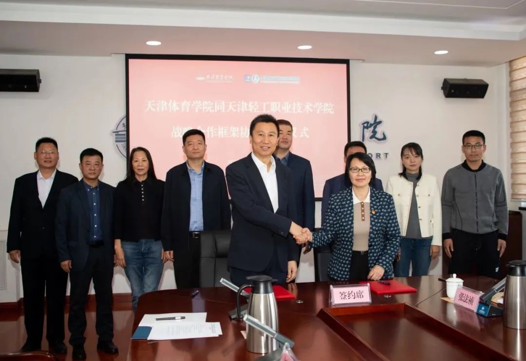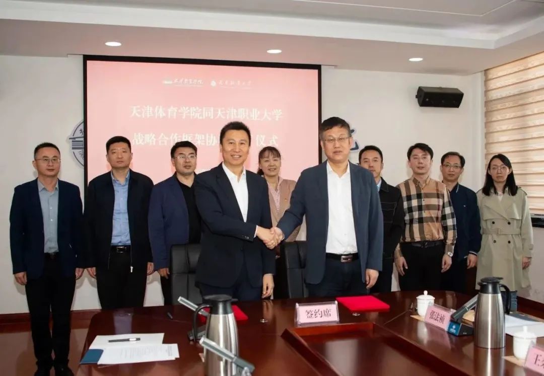 2023年10月27日,365英国上市公司官网同天津职业大学、天津轻工职业技术学院、天津体育职业学院战略合作框架协议签订仪式在我校举行。天津市教育委员会发展规划处副处长李清,天津市体育局宣教法规处副处长王笛,天津职业大学党委副书记、校长郑清春,天津轻工职业技术学院党委副书记、院长李云梅,天津体育职业学院党委副书记、院长王伟,365英国上市公司官网党委副书记、院长张欣,以及四所院校的相关职能处室领导出席了会议。会议由365英国上市公司官网副院长杨智主持。