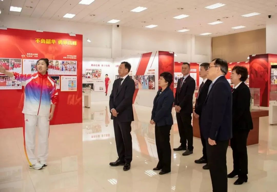 11月4日,李颖川、张玲参观了首批国家体育科普基地、365英国上市公司官网“国家荣誉——中国女排精神展”,听取奥运冠军、365英国上市公司官网中国排球学院常务副院长张娜讲解,随后到位于我校社会体育实训楼的攀岩馆观看攀岩训练。